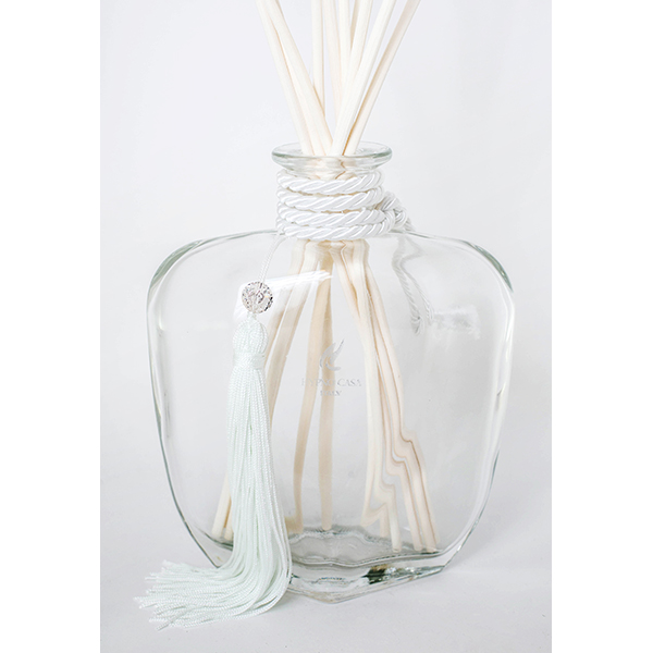 Диффузор классической формы, дополненный тесьмой со стразами Swarovski. Изготовлен итальянскими стеклодувами и дополнен деревянными палочками и подарочной упаковкой. К диффузорам этой коллекции специально разработаны четыре дистилята парфюмов.
